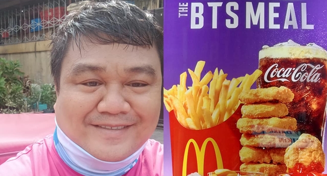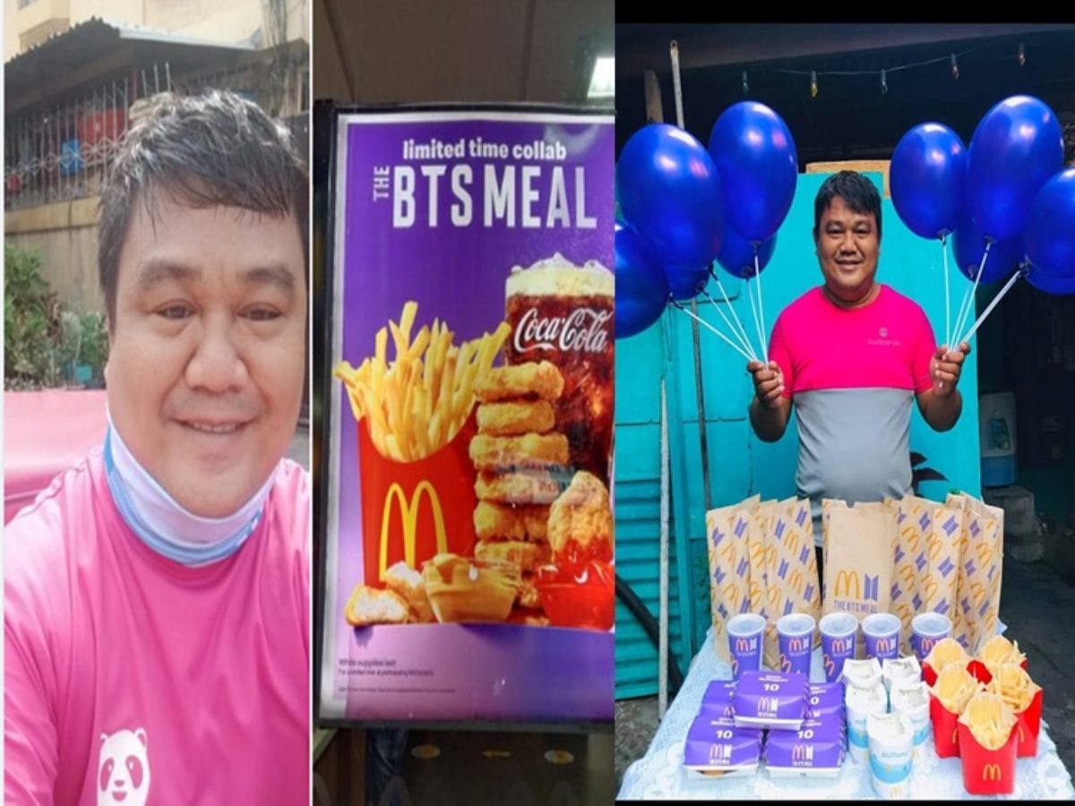 By the time he was on his 5 th BTS meal delivery of the day for eager Filipino fans of the K-Pop group that was when he was inspired to post on his Facebook account Lakas ng BTS Meal ngayon. As early as 730 am Benjamin and other foodpanda riders noticed that there was a surge of orders for a special limited edition BTS Meal from Mcdonalds. They bravely lined up along with delivery riders outside McDonalds outletsfollowing Covid.