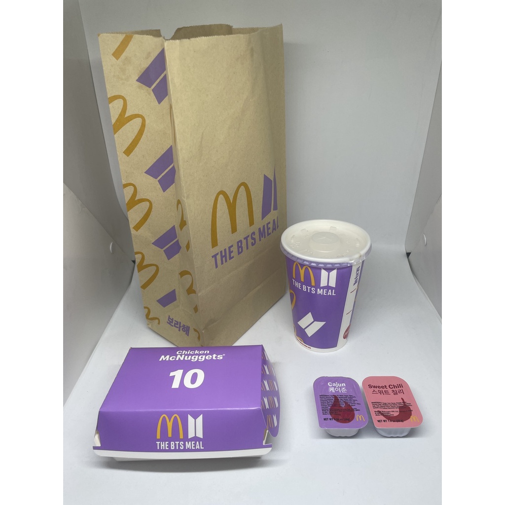 The Star Malaysia said one seller sold a purple-colored empty paper bag nugget box and paper cup with a BTS theme. For example most people would probably say Spring Day or Blood Sweat and Tears for BTS. The BTS Mealwhich includes nine Chicken McNuggets large fries a large Coke and exclusive sweet chilli and cajun dipping sauces inspired by popular recipes from McDonalds in South Koreawas quickly snapped up by fans with the fast-food restaurant seeing sold-out meals and long lines of delivery drivers waiting to pick up the purple boxes of joy.